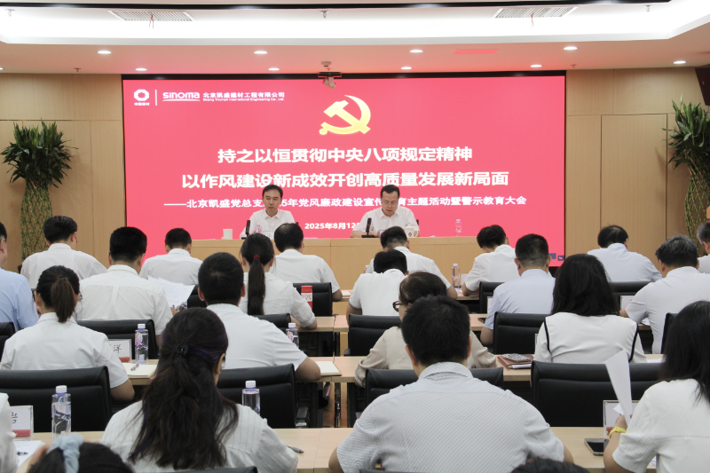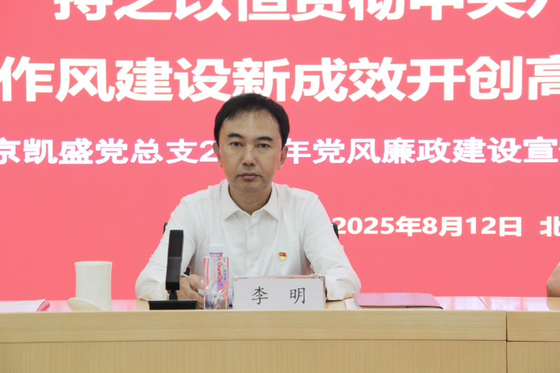 为深入学习贯彻习近平新时代中国特色社会主义思想,压实管党治党政治责任,推进全面从严治党走深走实,进一步加强公司党风廉政建设,结合正在开展的深入贯彻中央八项规定精神学习教育,8月12日下午,北京凯盛党总支以“持之以恒贯彻中央八项规定精神 以作风建设新成效开创高质量发展新局面”为主题,开展2025年党风廉政建设宣传教育主题活动,并召开深入贯彻中央八项规定精神学习教育警示教育大会。公司党总支书记、董事李明出席活动并讲话,党总支副书记、总经理谢吉优主持会议并开展警示教育。