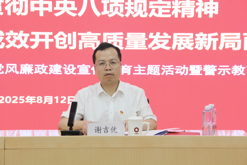 谢吉优通报了违反中央八项规定精神的典型案例,深入分析和解读了典型案例背后的问题根源,并传达了《中材国际作风建设十五条》的内容。他在总结讲话中指出,公司全体党员领导干部要以案为鉴、警钟长鸣,锲而不舍落实中央八项规定精神,真正使遵规守纪成为内心信条和自觉行动,营造风清气正、干事创业的良好氛围,以党风廉政建设新成效护航公司高质量发展迈上新台阶。