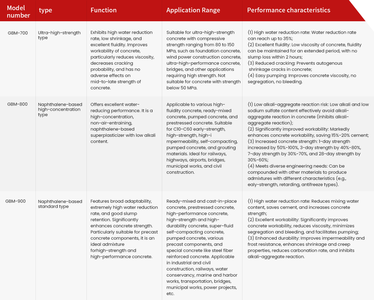 GREEN BASIC MATERIALS (GBM), as a  globally leading supplier of building materials, mainly engages in the R&D, production, and sales of chemical building materials such as concrete admixtures, cement grinding aids, and special functional materials. The company has established branches and production bases in the regions including Central Asia, North Africa, the Middle East, East Asia, Russia, the Democratic Republic of Congo, and Nigeria, alongside distributing and service branches across multiple global locations. Guided by the philosophy of "Resources Efficiency for Better Serving Construction," GBM adheres to the core values of innovation, performance, harmony and responsibility. Customer-centric and committed to low-carbon, environmental, and green development principles, GBM is dedicated to providing integrated solutions for global concrete engineering and other essential building materials.